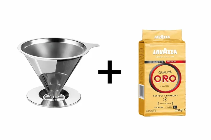 דריפר נירוסטה רב פעמי + 250 גרם קפה טחון לוואצה אורו